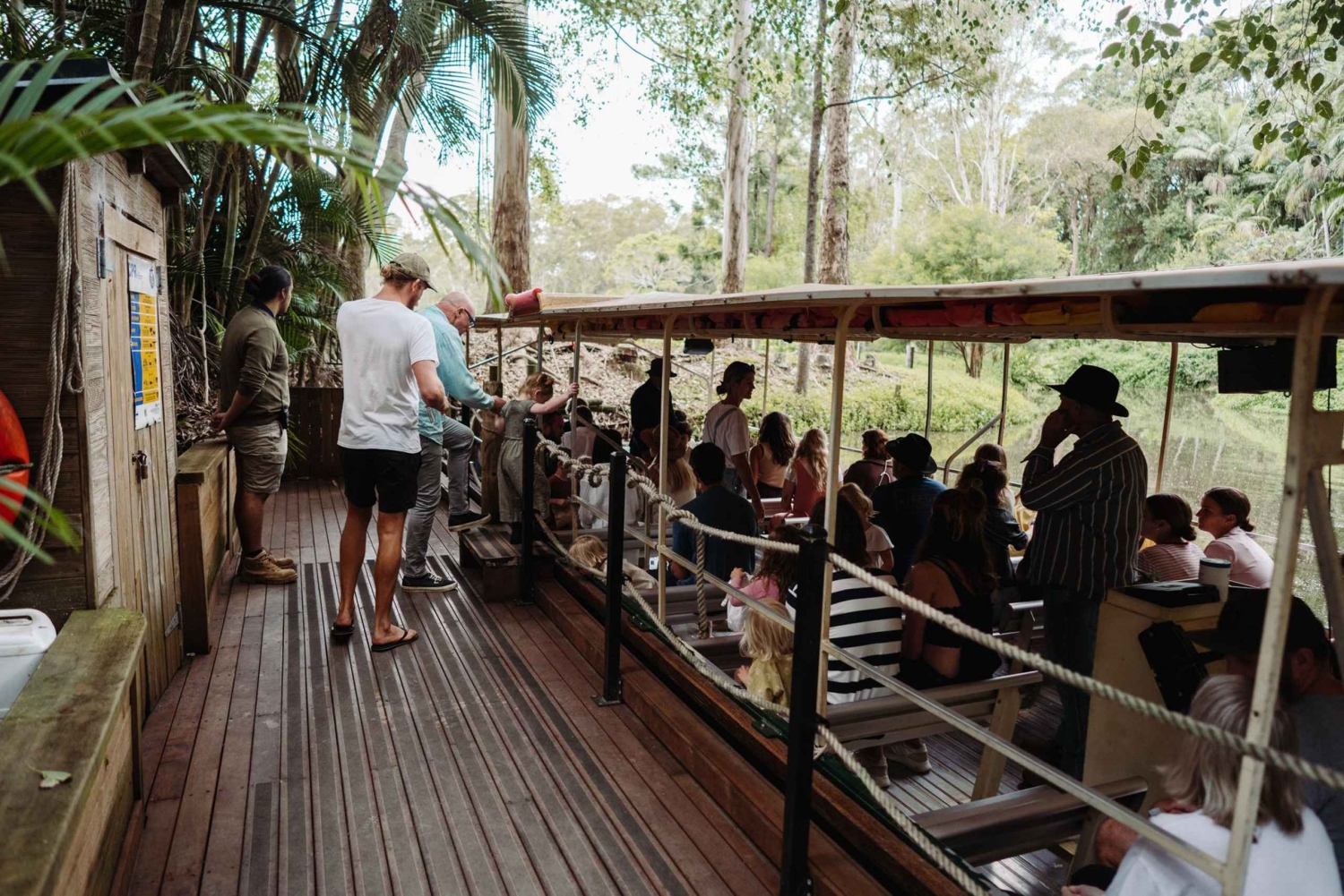 Saavu maatilalle ja kirjaudu sisään ennen toimintaa. Hyppää traktorijunan kyytiin ja aloita opastettu kierros hedelmätarhoilla ja näe kaikki herkulliset hedelmät, jotka siellä kasvavat. Maista myös eksoottisia hedelmiä. Tämän jälkeen voit suunnata eläinpuistoon katsomaan kenguruita, hevosia ja aaseja. Nouse seuraavaksi veneeseen ja risteile maatilan pusikkolaakson läpi. Purjehdi Cudgen Creekiä pitkin ja opi lisää vesireitin varrella olevista kasveista, kuten alkuperäisestä inkivääristä, joka auttaa estämään eroosiota. Varo koaloja, kilpikonnia ja ankkoja matkan varrella. Nouse veneestä, kun olet valmis.Includes